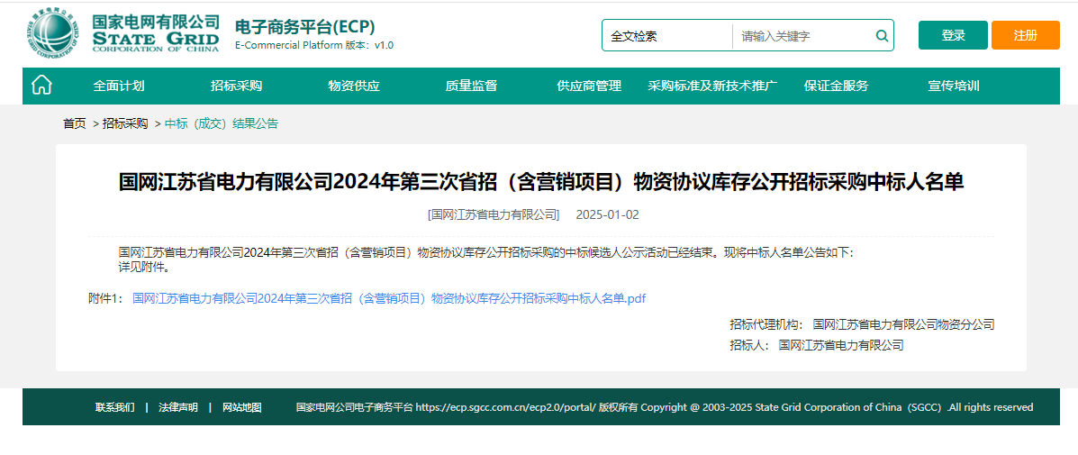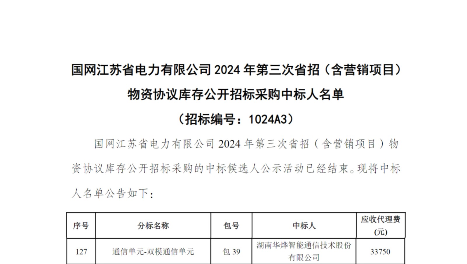 【中标喜讯】华烨智能中标国网江苏省电力有限公司 2024 年第三次省招(含营销项目)物资协议库存公开招标采购