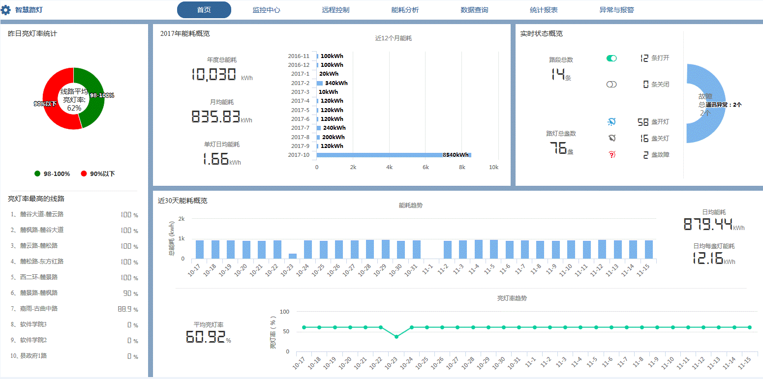 测、远程控制、能耗分析、数据查询和运营维护等功能,立足于城市照明精细化管理和节能减排。